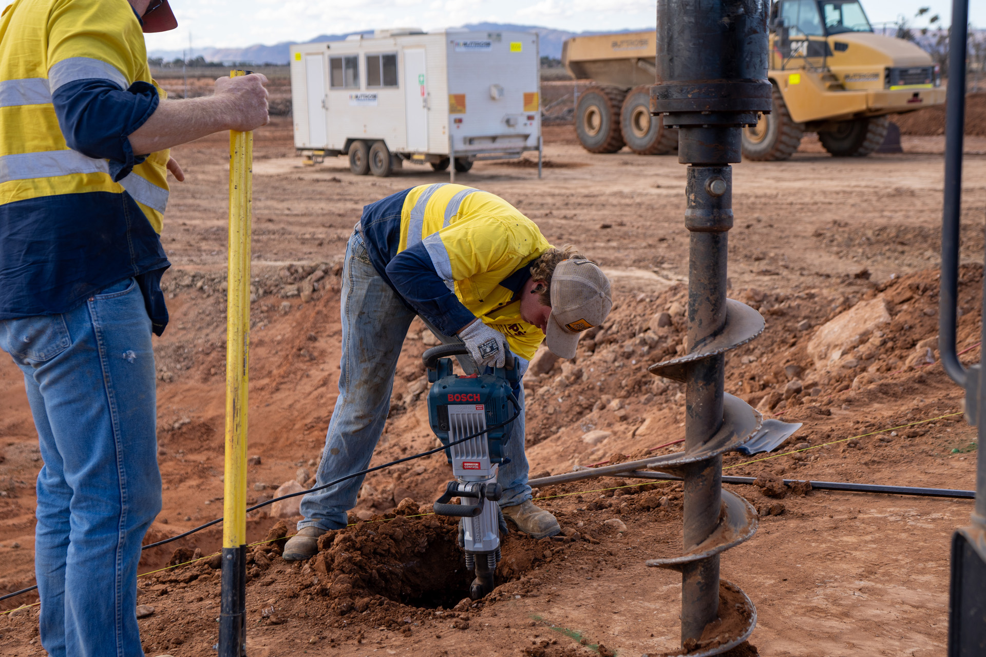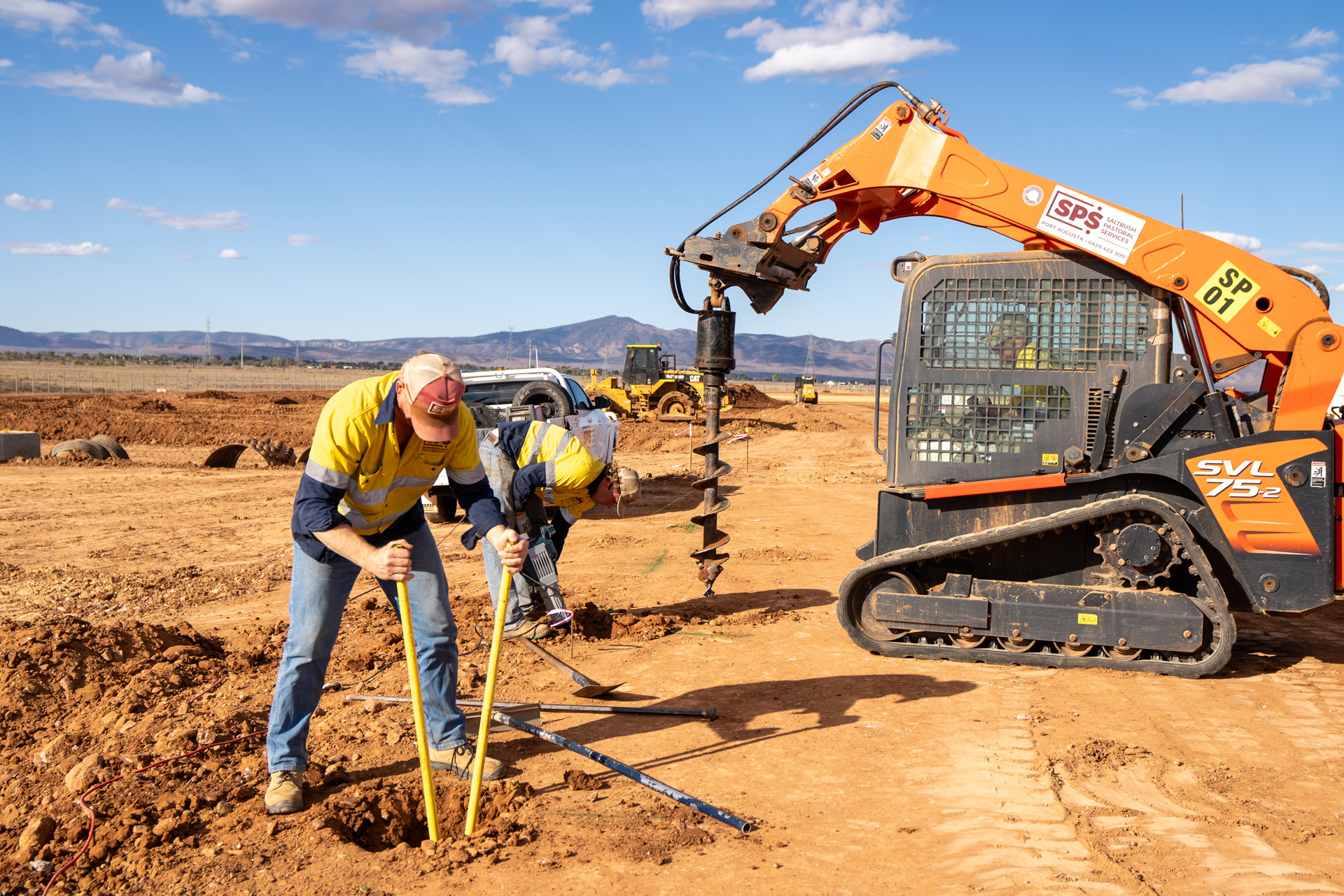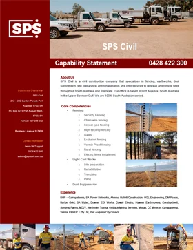 SPS Civil provided plant, equipment and labour to auger holes for the fence posts & gate footings. We supplied 32mpa concrete for fence post footings and gate plinths. SPS Civil installed 1400 meter of 1800mm x 50mm x 2.5mm galvanised chainmesh fence complete with 4mm helicoil backing wires. Strained chainmesh clipped to the backing wire.